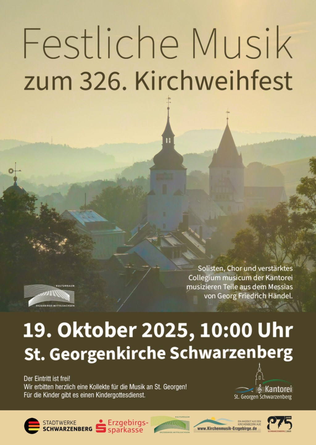 Der Eintritt ist frei. Wir erbitten herzlich eine Kollekte für die Musik an St. Georgen. Für die Kinder gibt es einen Kindergottesdienst.