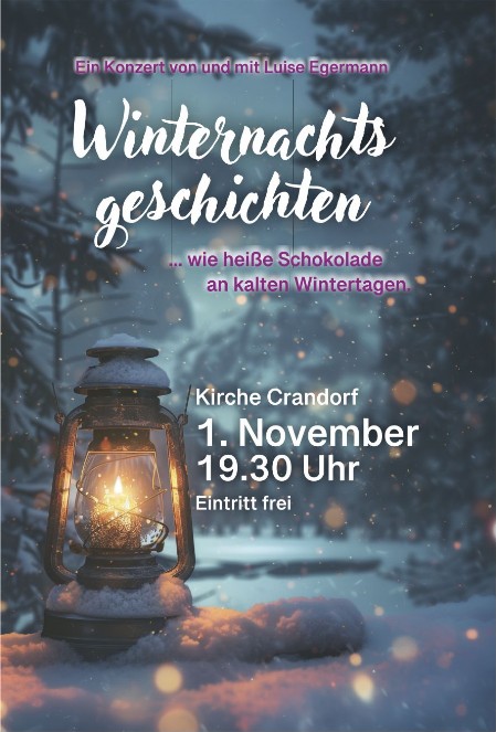 Zwischen dunklen Nächten und vollgestopften Tagen sucht Luise Egermann nach funkelnden Momenten – erfundene und wahre – die das Leben heller machen. Passende Lieder führen wie ein roter Faden durch Geschichten, Gefühle und Gedanken. Es sind kleine Wunder, die uns im Alltag begegnen. Sie sind leise, überraschend und getragen von Gottes Nähe. Freuen Sie sich auf einen Abend voller Worte und Klänge, die das Herz und die Seele wärmen!