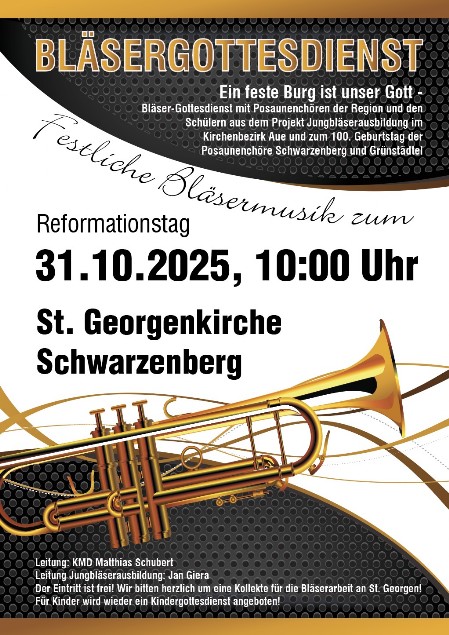 Zum ersten Mal spielt der Jugendposaunenchor in Schwarzenberg. Die Zuhörer erwartet festliche Musik von Barock bis Pop. Die jungen Bläser bringen somit einen Gruß zum 100. Geburtstag der Posaunenchöre Schwarzenberg und Grünstädtel und zum 875. Jubiläum der Stadt.